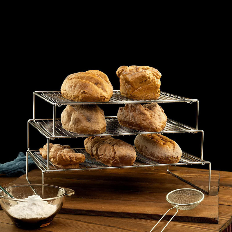 Αυτό το ευέλικτο ράφιο ψύξης και τηγανίτη μαγειρέματος από την Amazon διαθέτει ένα τριπλό στρώμα σχεδιασμού, παρέχοντας άφθονο χώρο για ψύξη και ψήσιμο μιας ποικιλίας αρτοσκευασμάτων.Εργαλεία με ανθεκτική κατασκευή πλέγματος, εξασφαλίζει ομοιόμορφη κατανομή της θερμότητας και αποτελεσματική ψύξη.